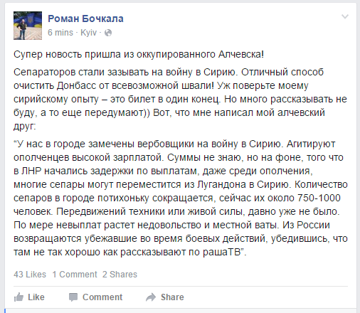 Помню, как 4 марта 2014 г. полковник Владимир Квачков из заточения напсал письмо, предлагая провести быструю спецоперацию по разделению Украины. Опираясь на местные силы, которые нужно было организовать в отряды с помощью сил спецназа РФ. Создав для отделения Юго-Востока два командования Сил специальных операций – в Ростове и Белгороде. Но - увы, увы… Заключенный Квачков оказался умнее московских «стратигов».