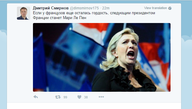 "1. Недовольство направленное на мусульман будет поддержано крайне правыми. Как на выборах, так и в уличных разборках. Кто финансирует Мари Ле Пен? (Французская партия "Национальный фронт", возглавляемая Марин Ле Пен, является одним из главных политических союзников нынешнего руководства РФ в Европе. В ноябре прошлого года в СМИ просочилась информация о том, что партия получила кредит в €9 млн от российского банка – "ГОРДОН").