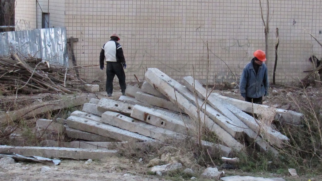 Ну а фото уборщиков (с лопатой, с тачкой, ну и эти ищущие в плитах) улыбнуло, салюта только не хватало.
