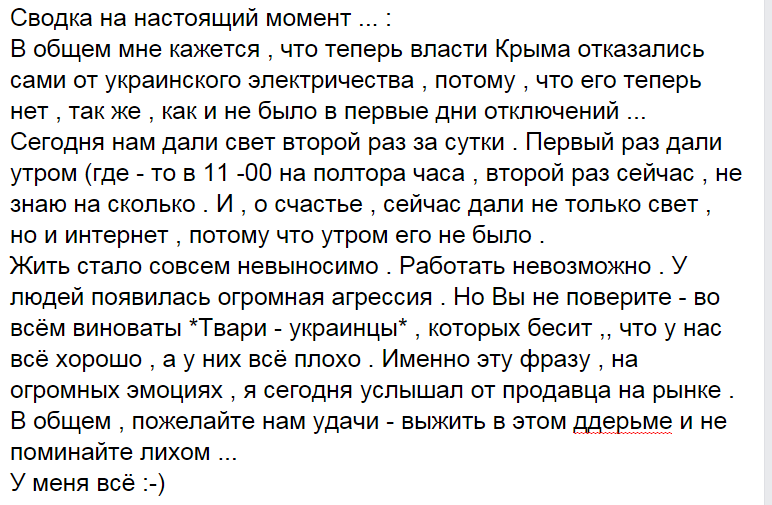 Я понял, почему здесь многие радуются тому, что в Крыму лектричества нет.