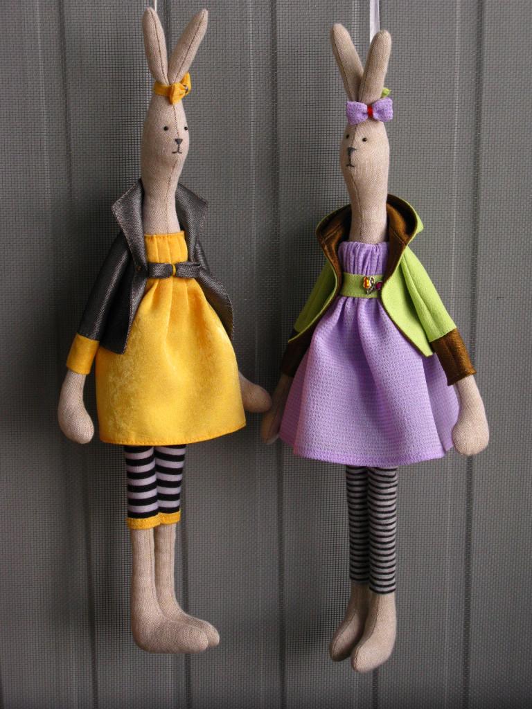 Милейшие заиньки-модницы станут замечательным подарком для Ваших друзей или для Вас. Они могут дополнить интерьер комнаты Вашего ребенка или расположиться в любом другом месте Вашего жилища.