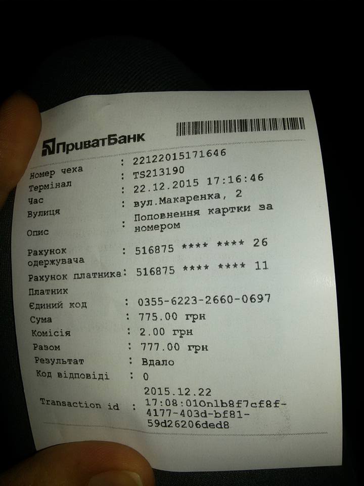 198.00UAH Popolnenie nalichnymi v terminale samoobsluzhivaniya. Platelschik: tel. (+38099)**22