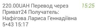 18 декабря Юлия передала, что пришло ей на карточку 100 грн. от Кузенко Максим Володимирович. Спасибо большое!