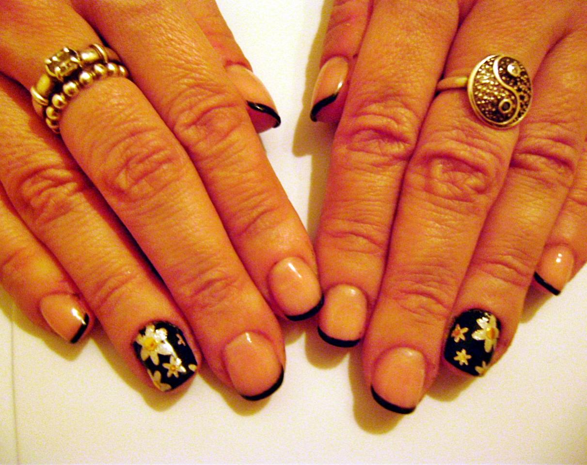 Маникюр делаю классический (с размягчением кутикулы ремувером). Выполняю однотонное покрытие гель-лаком, френч, втирку, лунный маникюр с негативным пространством, обратный френч, декор стразами, дизайн с использованием стикеров.