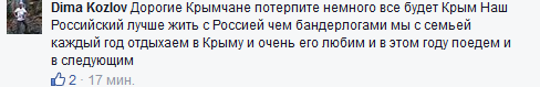 "Судя по тому как Россию жмут санкциями, а Украину не щимят, наш полуостров заставят вернуть Украине. Вопрос куда нам валить, мимикрировать неполучится, все засвечены. Рекомендую уже сейчас валить с Крыма, потом будет просто не до продаж недвиги. Нас купили обещаниями как ослов морковкой, использовали и бросили. Я открыл для себя простую вещь, мы предали Родину УКраину, нас и уважать нельзя ни России не Украине...". )))))))