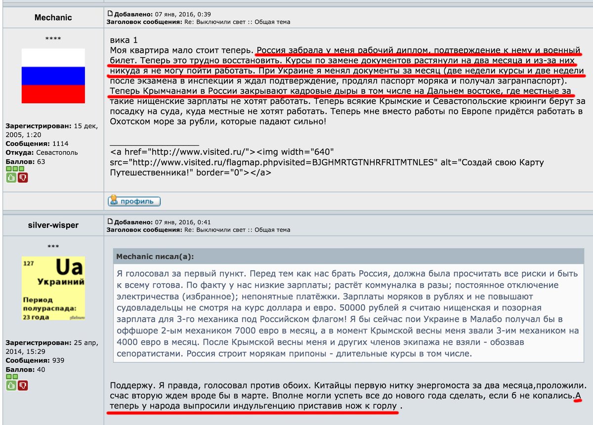Ещё у них потихоньку начинаются проблемы на границе с Крымом. 99% крымчан улетают в рейсы из Симферополя через мацкву и соответственно получают штампы в паспорт о выезде. Т.к. юридически Крым можно покинуть только через официальные пропускные пункты такие моряки становятся нарушителями. При попытке попасть на материковую Украину крымчанин как минимум попадает под админ нарушение и штраф около 5000грн.