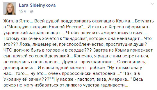 сейчас в Крыму проходит изменение мышления, раньше они радовались когда свет не выключали, а сейчас радуются что ВЫКЛЮЧИЛИ соседям...