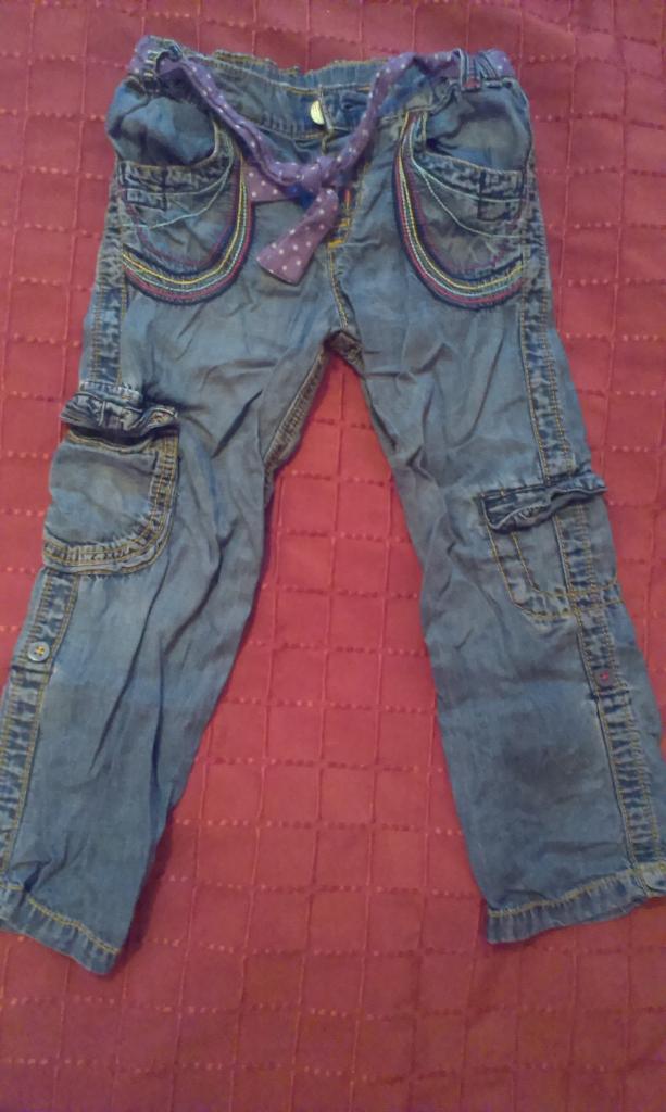 Джинсы -бриджи , очень клевые, тонкий летний джинс, цветные швы,отличное сост., можно подстегнуть внутри на пуговичку,будут бриджи.Носить можно с 98 до 116. цена 60 грн