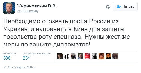 «На самом деле вопрос безопасности нашего посольства на Украине должен обеспечиваться. С одной стороны, конечно, небходимый ресурс со стороны РФ для этого имеется. С другой – непонятно зачем продолжать дипломатические отношения со страной, которая подвергает опасности жизнь наших дипломатов.