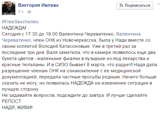 Если честно, я не совсем вижу, что за Савченко можно взять, да ещё и подороже - может просто я непонятливая, не знаю.