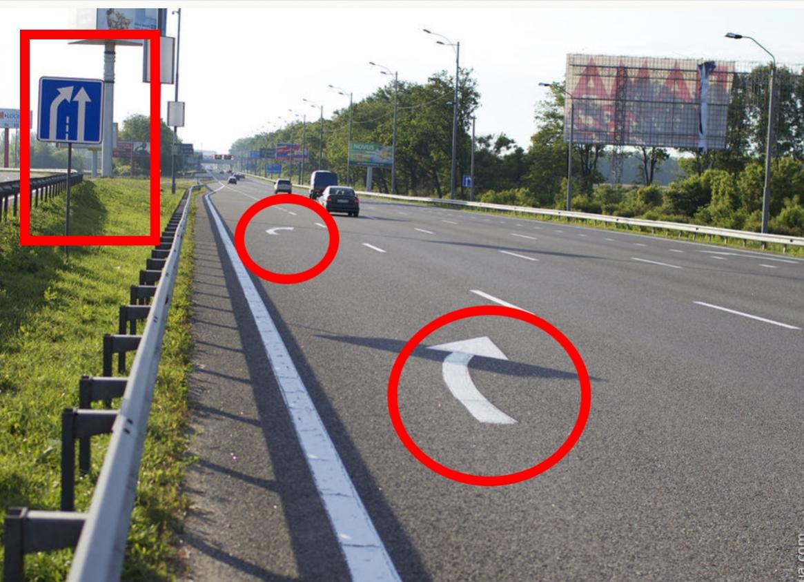 Эх ... дорожная служба у нас не умеют разметку рисовать так, чтобы было любому понятно . В сторону города по Пересыпским мостом до сих пор не могут нарисовать стрелки прямо на дороге ( как на примере ) , показывающие конец дополнительной полосы движения на крайней левой полосе ( которая идет по трамвайным путям ) .