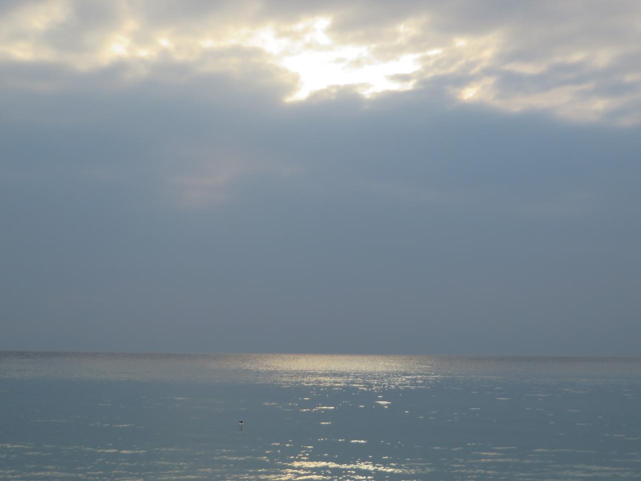 Кабельный, 7.00. Ясно, над морем легкая дымка, безветренно, море спокойное, вода мутная. Воздух 4, вода 6.
