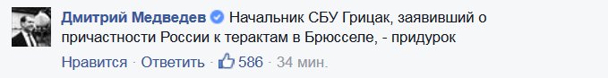 Дерзкий сука Димон. Жаль он не назвал придурками всех, кто вводил войска в нашу страну и врал про распятых мальчиков.