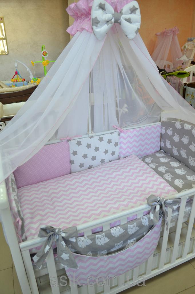 Я планирую на асике заказывать. Комплект с бортиками, одеяло+пододеяльник, подушка+наволочка, простынь на резинке, карман для мелочей, балдахин -1064 грн.