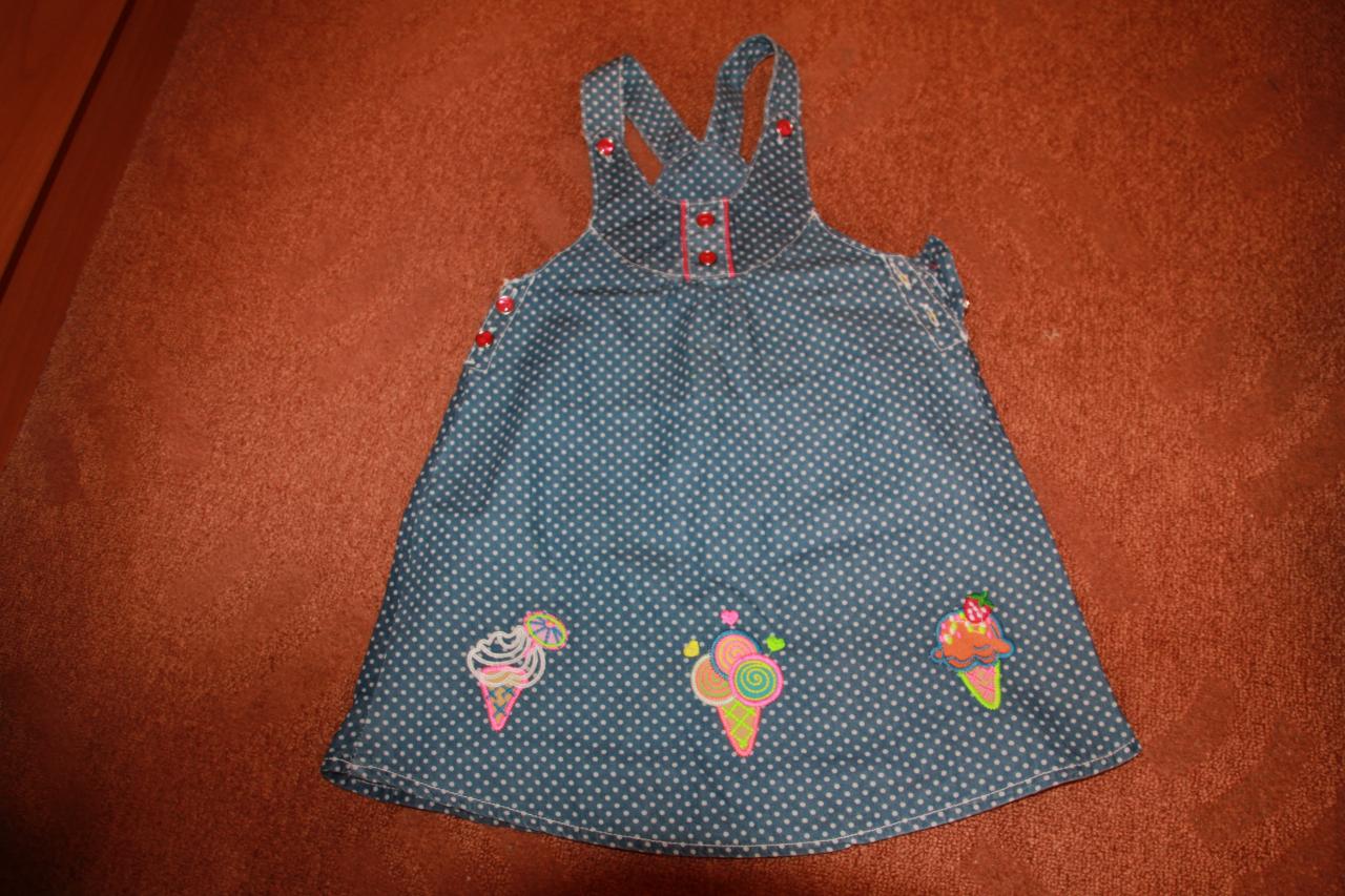 Сарафанчик под джинс,одевали пару раз и выросли.Рост 98,лямки регулируются на пуговицах.-70 грн.
