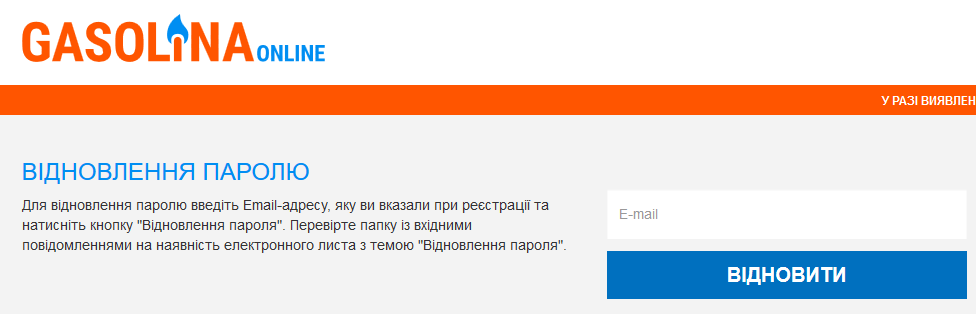 У меня, почему то, нет "Забули пароль?" под "Увійти до кабінету".