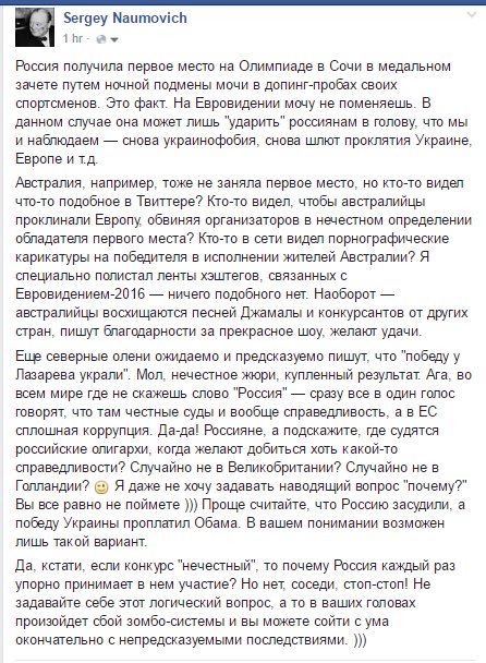 "Главное, что по зрительскому голосованию мы первые. Интересно, как Евровидение встретит Украина в 2017? Все самое интересное впереди!"