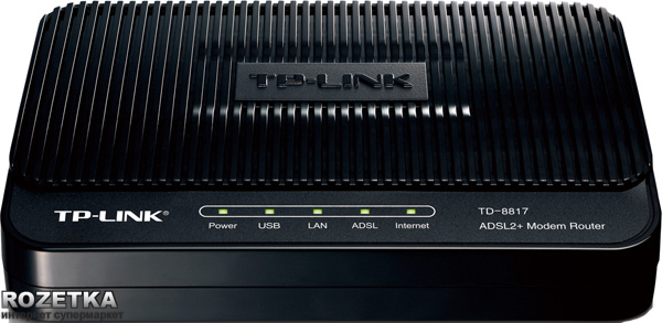 Маршрутизатор со встроенным модемом ADSL2+ (TD-8817) от компании TP-Link представляет собой решение 2-в-1, удачно совмещая функции высокоскоростного модема DSL и 1-портового 10/100 маршрутизатора для сети Ethernet.