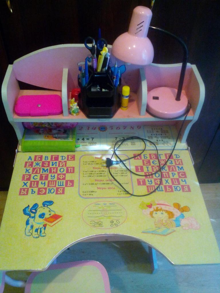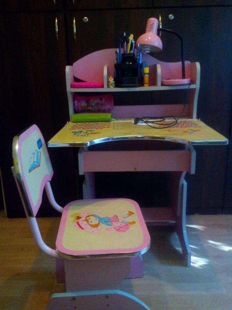 Парта детская трансформер, регулируется по высоте и росту ребенка + в настольная лампа в цвет с партой,