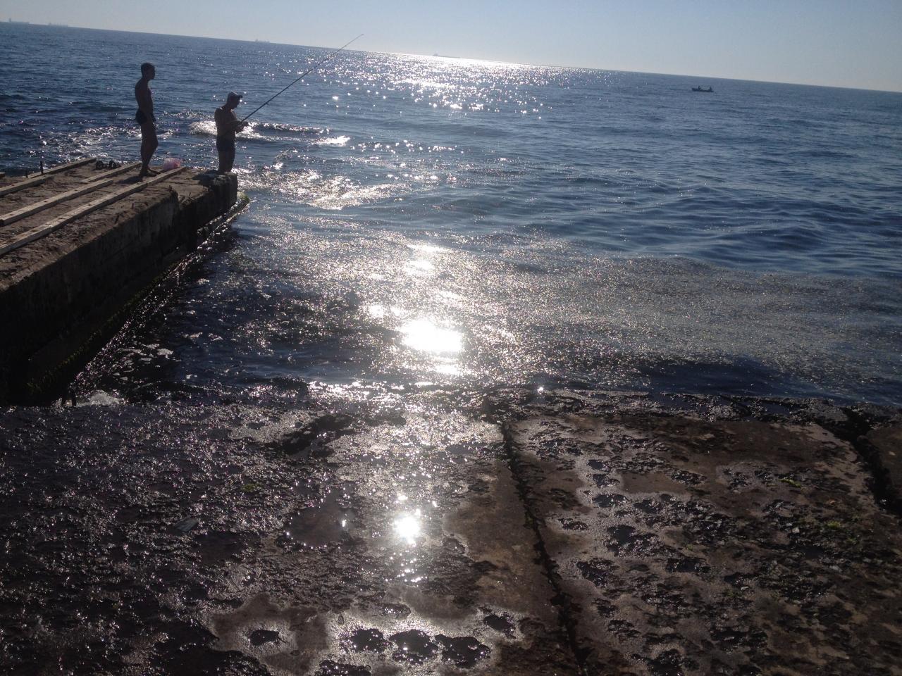 обед. 11 часов. пляж Дача Ковалевского. грязнейшая вода, шторм, с моря плывет какое-то дурнопахнущее пятно - что за пятно не ясно, но отчетливо видно в нем пластиковые бутылки (может с кораблей или яхт какой-то муссор). фээээ одним словом.