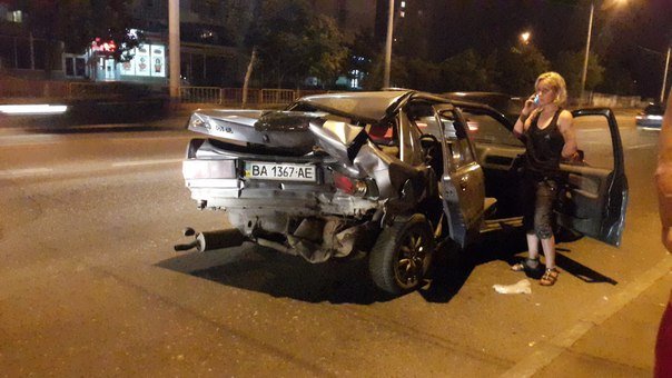 Проспект Шевченко. Водителя, молодого парня забрала скорая. Но вроде без серьёзных плвреждений.