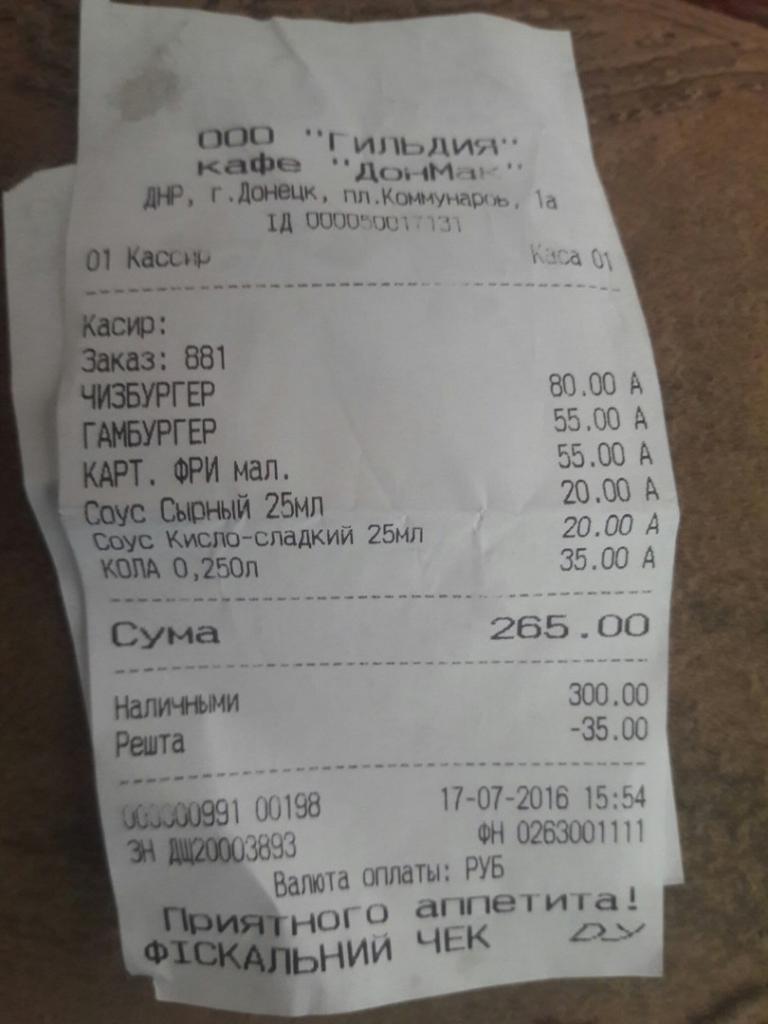 это реакция на счет за съеденное?