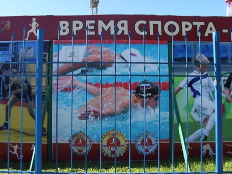 В Благовещенске знаменитого американского пловца Фелпса выдали за россиянина. Авторы плаката заменили американский флаг на российский, но оставили фамилию пловца.