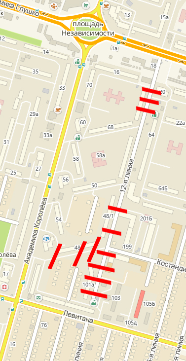 Когда-то на Авдеева-Черноморского от Чубаевской до Шклярука было 13(!) лежачих полицейских, все ездили и матерились, но никто ничего не делал, потом, видимо, кого-то это достало и он, наверное, сделал запрос о правомерности их монтажа. А так как, скорее всего, это были самовольно установленные лежачие полицейские, то их демонтировали. Все 13. Сомневаюсь, что и там, где Вы показали, они все узаконены. Я знаю, насколько это гембельно, поскольку делала это у себя возле дома. Там идет согласование в трех учреждениях, куча волокиты, но зато они внесены в какой-то там реестр, есть документы, установлены знаки, выполнены по моей схеме в тех местах, где я указала. Так что можете смело подать запрос о правомерности установки тех лежачих полицейских и их демонтаже при отсутствии документов.