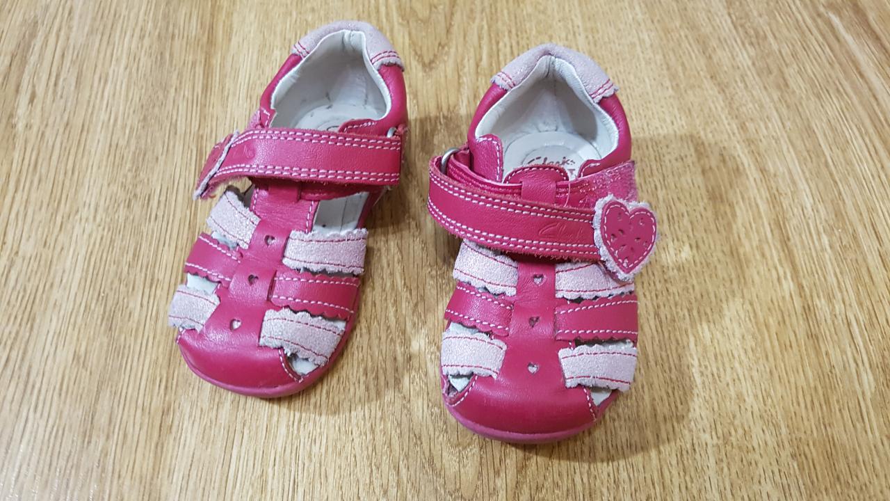 - текстильные тапочки для первых шагов от Next (11 см по стельке) и босоножки Clarks (12 см по стельке)