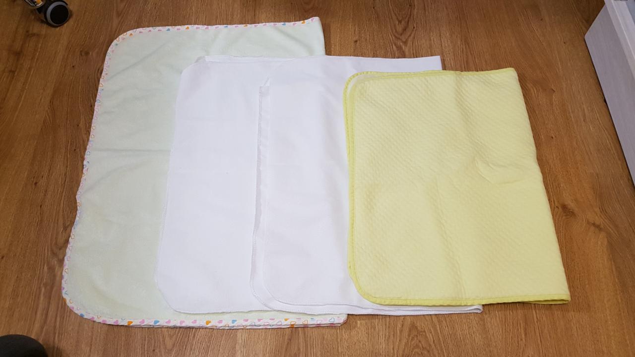 - непромокаемые пеленки (большие, на фото они сложены вдвое)