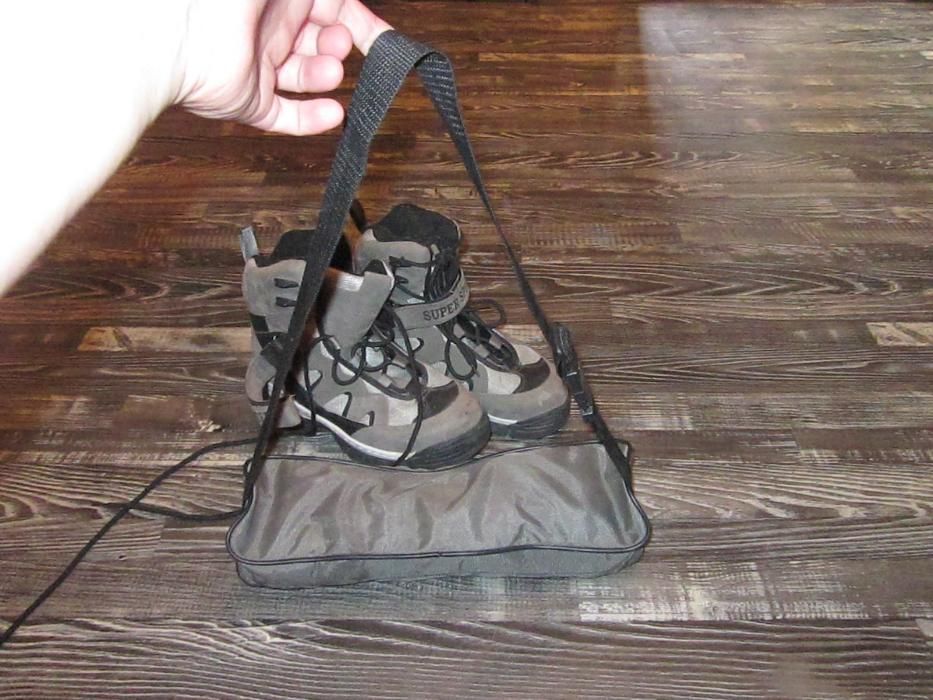 Полозья с колёсами хранятся в сумке. Ботинки на шнуровке и липучке, хорошо фиксируют ноги во время движения. Колёса каучуковые, тихие.