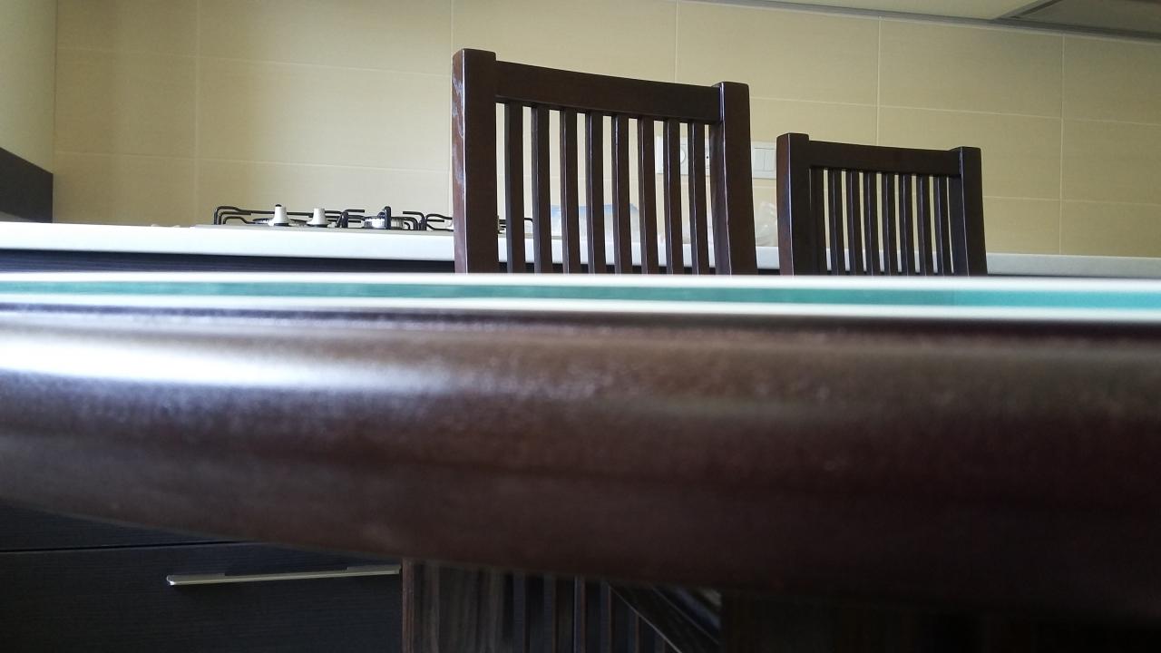 У нас вот такой деревянный стол со стеклянной столешницей