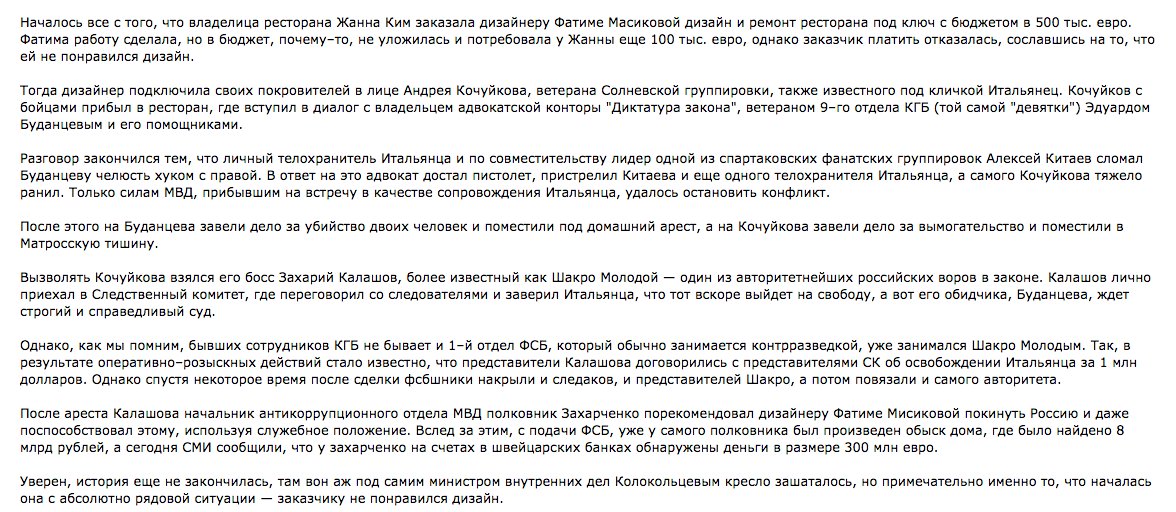 1. Ресторан, где его "уложили", "Ветерок" - дорогой, место тусни "элиты" с Рублёвки.