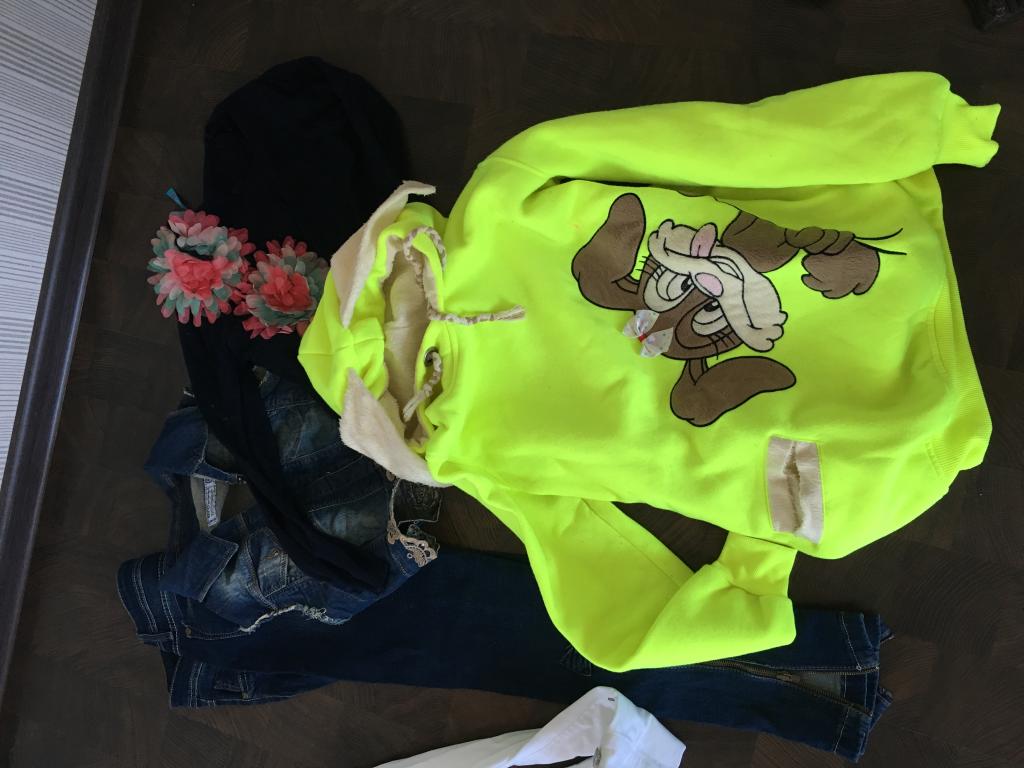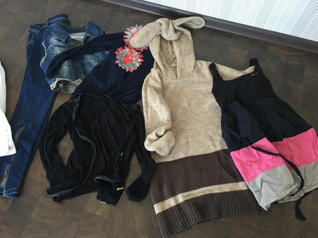 Девочки, лежат несколько пакетов подростковых девчачьих вещей на 12-15 лет(лето-осень), есть свитера, джинсы, обуви нет.