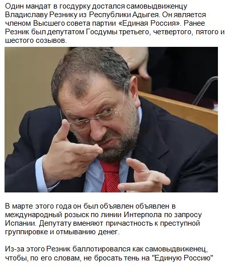Единственный самовыдвеженец в госдурке - член высшего совета партии жуликов и воров "ЕдРосня". Он же в розыске по линии Интерпола
