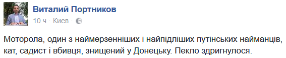 А по поводу мотролы - не думаю, что украинским СБ была выгодна его смерть..понятно, что рашка зачищает,чтобы Украину обвинить в "срыве перемирия".Радует,что еще одно ростовское чмо вылетелело с украинской земли в ад..