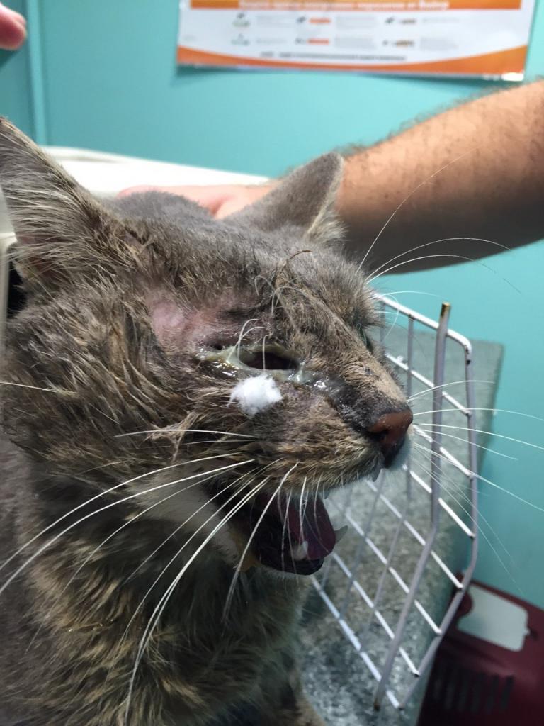 Сегодня, 18.11.2016г.(утром), в районе Французского бульвара был найден бездомный кот, с рваной раной на голове и вытекшим глазом. Кот очень ослаблен, видно, что не ел несколько дней, самостоятельно питаться уже не может. Кот срочно был доставлен в ближайшую вет клинику "Лесси" по адресу ул. Черняховского, 13. После осмотра, врач сказал, что коту срочно нужна операция по удалению глаза и вычищению гноя из раны и послеоперационная реабилитация. Счёт за операцию 850грн., плюс послеоперационный уход 350-400грн. в сутки. Операцию сделали в долг, т.к. у меня просто нет сейчас денег, а оттягивать операцию было нельзя. Врач мне поверил, но деньги нужно принести в ближайшее время. Т.к. у меня ещё долг в 1500грн. по котятам из этой темы