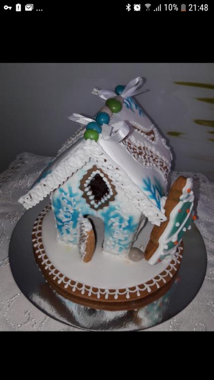 - Домик большой 20 см в высоту, в комплекте с санками, лошадкой, елкой, человечком и печеньками - 400 грн.