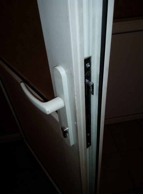 Вот на такую металлопластиковую дверь замок другой поинтересней можно, без замены двери? на фото Kale.