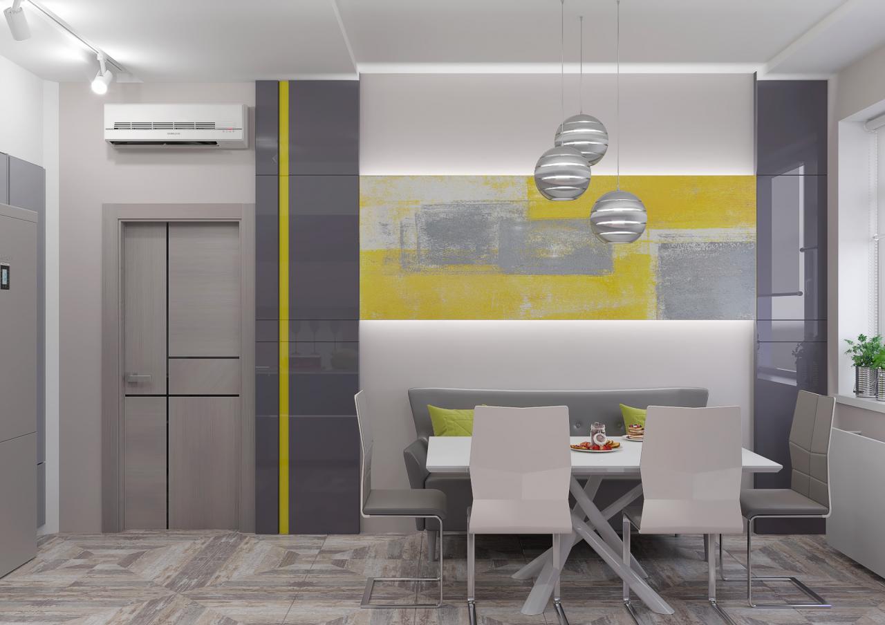 Серый и розовый/лавандовый можно сочетать с желтым, но в таком случае желтый - это центр композиции, а холодные цвета - фон. Например, какой-то невероятно интересный и яркий желтый диван и несколько мелких желтых деталей.