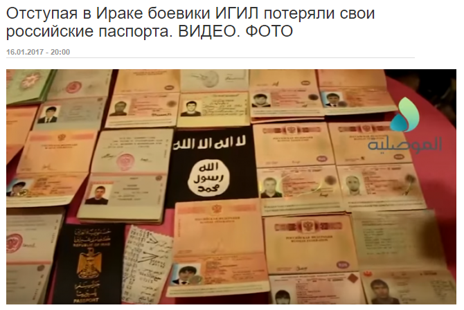 Иракские военные, в конце прошлой недели занявшие здание университета в удерживаемом боевиками ИГИЛ городе Мосуле, показали обнаруженные в здании учебного заведения десятки паспортов наемников, среди которых больше всего оказалось российских.