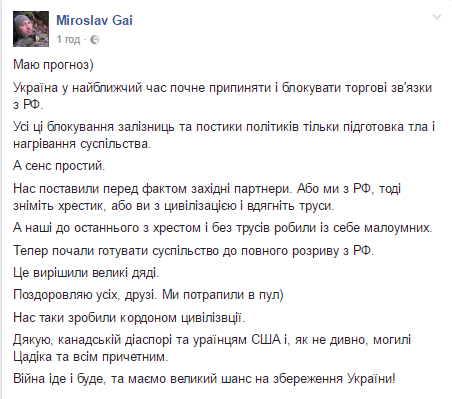 Ви тепер розумієте, чому знищено контрснайперські комплекси, аеророзвідку? Чому розформовано танкову бригаду в Овручі й відведено війська? Вам ясно, чому розміновано всі мости, дороги, лінію розмежування та Чонгар?