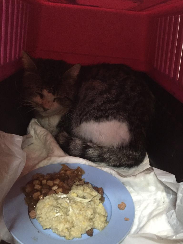 Тимофей вчера попробовал сам покушать. первый раз за 7 дней. Врач говорит, что это очень хороший признак, значит, мы точно теперь поправимся! А ещё вчера его кастрировали. Теперь, после выписки из вет. клиники он полностью будет готов к пристройству, а пока он поедет на передержку.