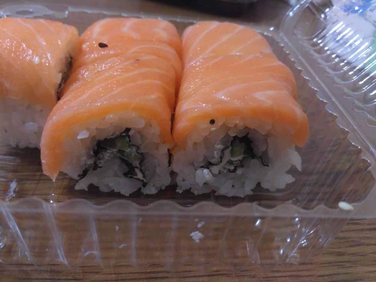 Заказала в Harakiri. Очень разочарована. Ролл с филадельфией и лососем,не такой уж и дешёвый.Но увы,фила от меня Спряталась.