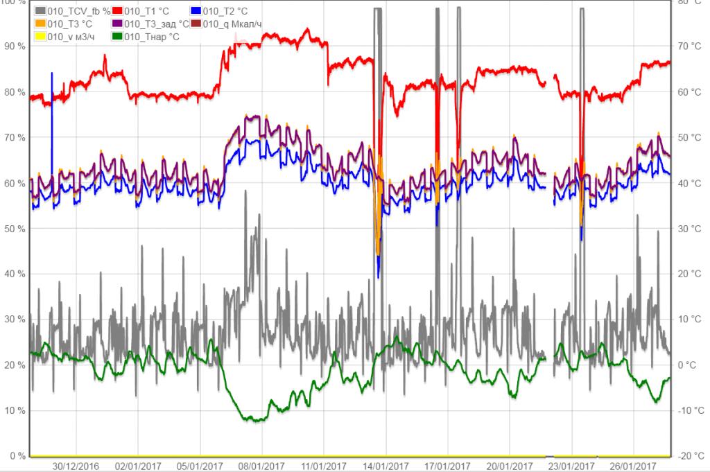 Хрущевка 5-ти этажка (6 подъездов) с автоматическим регулятором в отопительном сезоне 2016-2017 гг.