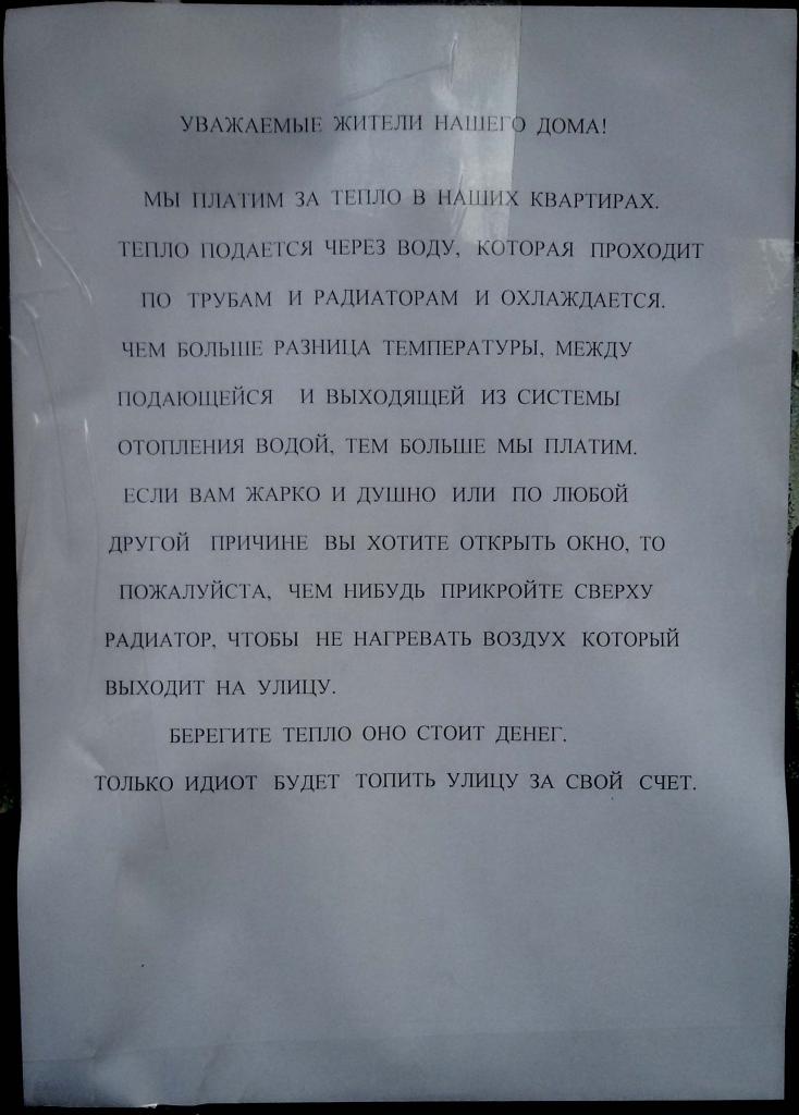 Жители одного дома сфотографировали и прислали мне креативное объявление.