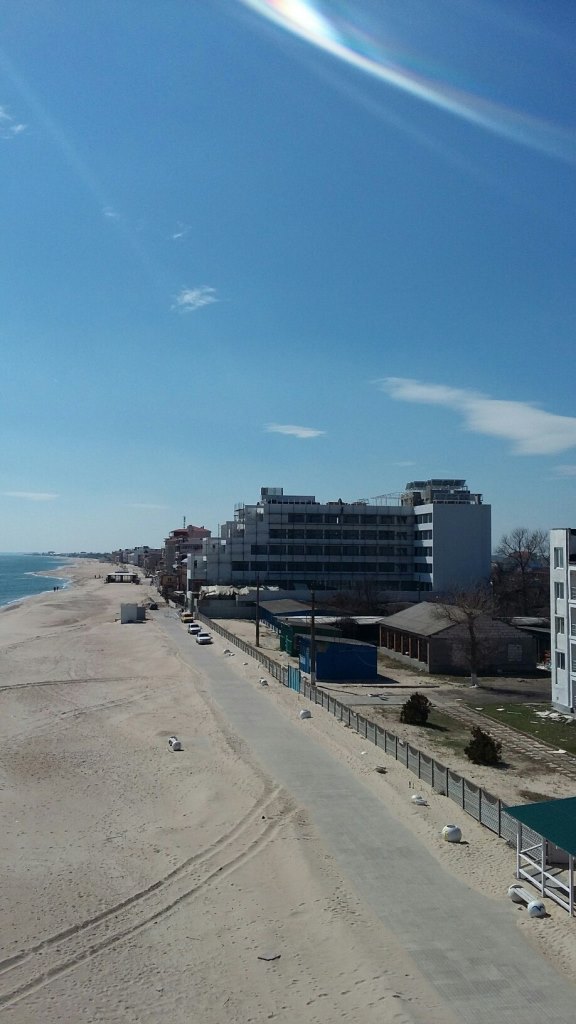 это в самой Затоке, центральный пляж, тоже с вышки. Что там за мутотень настроили не знаю, но пляж конечно ШИКАРДОС!!! по сравнению с прошлым годом)