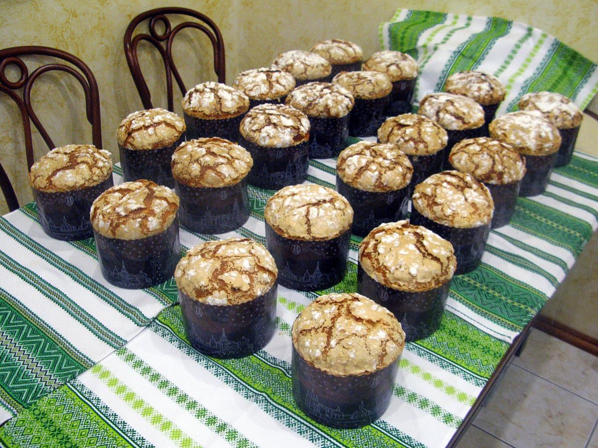 паска на переднем плане - закладка теста меньше чем у остальных (275г. против 308г.).