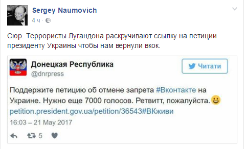 "Самое страшное для вас всех – то, о чем еще никто не говорит. Уже написаны поисковые роботы (пауки), которые будут индексировать страницы "ВКонтакте" на свежую активность после полной блокировки провайдерами. Нет, наказывать вас за использование "ВКонтакте" никто не будет. Просто через пару-тройку месяцев, если окажетесь в базе "Миротворца", не удивляйтесь. Вы же пособники людей, которые финансируют терроризм и войну в Украине", – рассказал он.