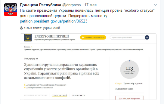 Донецкая республика весьма активна в украинских петициях
